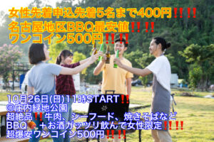 そんな、名古屋地区の10月度のイベントは、年に1回しか開催されない、超爆安BBQイベントを開催いたします‼️‼️