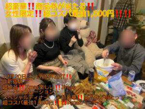 今回は、簡単ですぐに誰でも作れる手料理やXmasケーキのデコレーションをした後、皆さんとで作った手料理を食べたり、Xmasスペシャルディナーを食べたり、お酒を飲んだりした後に、超豪華‼️商品券が当たる‼️ビンゴ大会を開催いたします‼️‼️