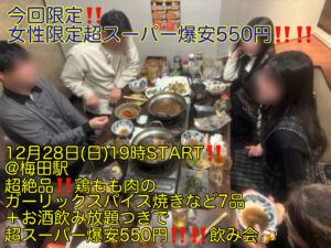そんな、関西地区の12月度のイベントは、通常よりも会費が安い、「超スーパー爆安飲み会」を開催いたします‼️‼️