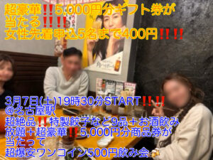 そんな、名古屋地区の3月度のイベントは、「年に数回しか開催されない」商品ばら撒き企画である「超豪華‼️5,000円分のギフト券が当たる‼️」ビンゴ大会つきの飲み会を開催いたします‼️‼️